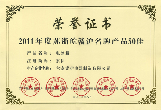 熱烈祝賀“索伊”牌冰箱榮獲“2011年度蘇浙皖贛滬