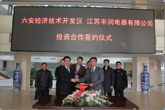 12月20日,江蘇豐潤(rùn)電器有限公司與六安經(jīng)濟(jì)開發(fā)區(qū)簽約,投資建設(shè)六安豐潤(rùn)電器有限公司。該項(xiàng)目為索伊電器招商引進(jìn),占地約100畝,項(xiàng)目總投資 1.5億元,其中固定資產(chǎn)投資不低于1.2億元,項(xiàng)目計(jì)劃2011年5月開工建設(shè),2013...