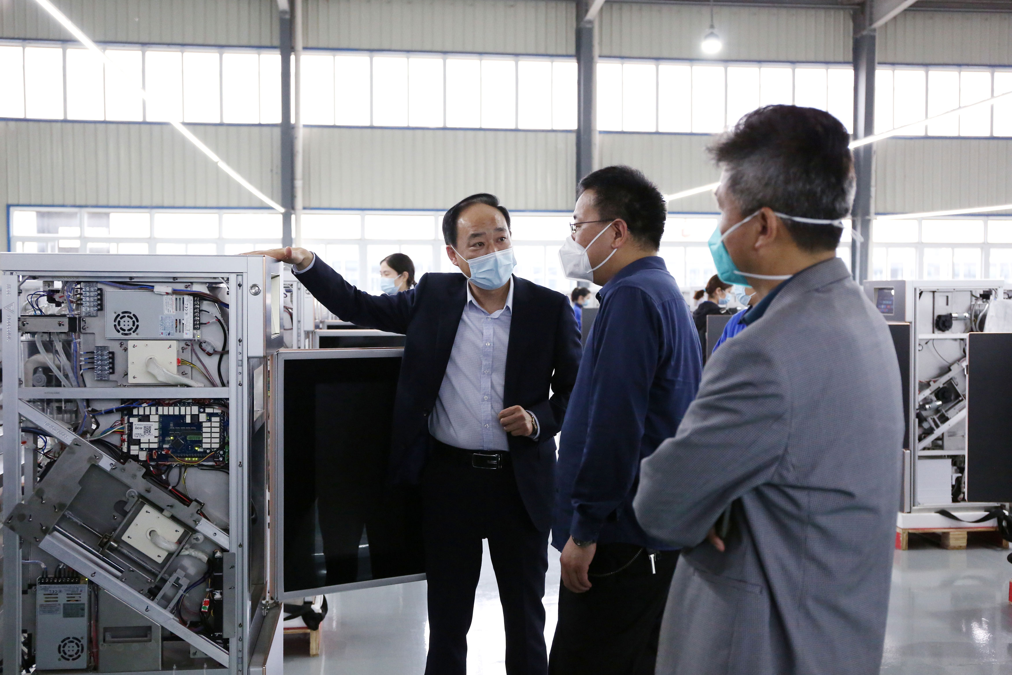 黃院長一行首先來到智能制造車間,董事長助理倪曙東向他介紹了世界首創、中國獨創的智能化數字烹飪機器人產品和自主研發全球領先并擁有118項專利的智能化數字機器人咖啡機、智能化數字保鮮柜等智能產品。黃院長在現場還不時提出詢問和說出自己的看法。黃院長聽了介紹后,稱贊道:“在我們的企業能制造出科技含量高的智能產品 。這很好,很先進,真是了不起?!?/span>