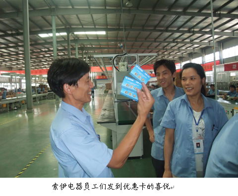 八周年:索伊電器成就品質生活,八周年:巔峰力度,只為感恩!本次感恩回饋活動,每位員工可領取三張優惠卡,持此卡購買索伊電器產品可享受內部員工優惠價。旨在讓每位員工切實的得到實惠,體驗自己親手制造的產品帶來的優質生活;回味8年來與公司同呼吸、共命運的激情歲月。