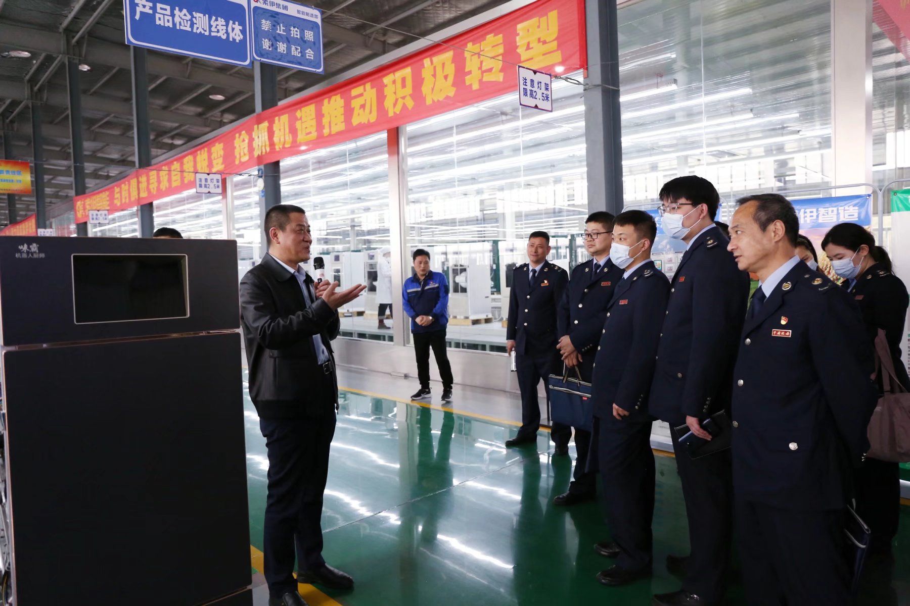 座談交流會(huì)結(jié)束以后,大家一起前往索伊電器企業(yè)黨建文化長廊,在一幅幅照片前駐足,大家一致認(rèn)為,索伊電器企業(yè)文化豐富多彩,黨工團(tuán)齊抓共管助推企業(yè)發(fā)展。接著又來到智能制造車間、產(chǎn)品傳統(tǒng)展示廳和轉(zhuǎn)型展示廳,王瓊峰董事長親自向大家講解索伊的智能系列產(chǎn)品,讓大家更深刻了解到索伊電器通過升級轉(zhuǎn)型,不斷創(chuàng)新發(fā)展。索伊電器人對未來充滿信心,相信在各級政府的重視、關(guān)心、支持下,在社會(huì)各界及合作伙伴共同努力推動(dòng)下,“智慧餐廚項(xiàng)目工程”將進(jìn)入各行各業(yè),智能化數(shù)字廚電產(chǎn)品將走進(jìn)千家萬戶!幾千年來的廚房操作將徹底變革!