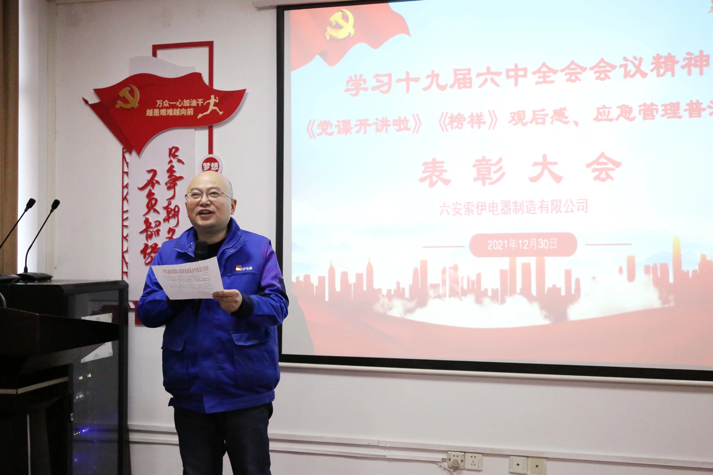 全體黨員通過觀看《黨課開講了》和《榜樣6》視頻,并撰寫觀后感,共計收到90篇感后觀,從中評出10篇優(yōu)秀作品,公司黨委給予表彰,希望更多的黨員加強(qiáng)學(xué)習(xí),并運(yùn)用到實(shí)踐工作中。同時我公司廣大黨員和員工共計500余人積極參加第三屆全國應(yīng)急管理普法知識競賽,通過一個月每天的認(rèn)真答題,更多的員工在學(xué)習(xí)中提升自己的應(yīng)急普法知識,為公司爭光。公司黨委對進(jìn)入開發(fā)區(qū)前100名索伊員工進(jìn)行表彰,我公司共計9人名列榜單。