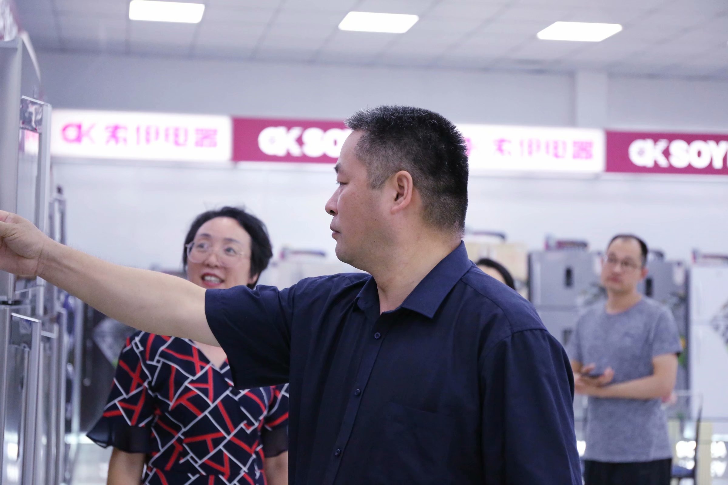 調研組來到智能制造車間,看到高科技的智能咖啡飲料機,品嘗了現磨的冰鎮咖啡,更是贊不絕口。再來到產品展示廳,看到一款款新穎而又創新的智能產品,無人售貨機、生鮮自提柜、機器人炒菜機等,更是嘆為觀止,為索伊集團大膽創新和超前的發展思維和理念給予高度的贊賞。
